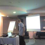 Иван Тонов след нея затвърди изключително силно тезата на последната лекция от петък, като наблегна изключително много на нуждата от проследяване на изчерпателните доказателства на теоремите в училище. Като продължение на темата Чавдар Лозанов ни показа "How to teach space geometry" и ни демонстрира как сложни пространствени дефиниции могат да бъдат представени доста "по-смилаемо" за учениците и да не са толкова "сухи и неразбираеми" (определенията в кавички да от мен). Следобедната сесия в събота я пропуснах...