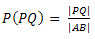 Това е основната задача в геометричните вероятности. За по-опростен запис ще приемем, че ако |PQ|=h и |AB|=l, то P(PQ)=P(h)=h/l. Валидни са следните закони: