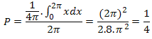 Лицето на криволинейния триъгълник ABC може да варира от 0 до 2π. Следователно вероятността т.О да е вътре в многостена ABCD е: